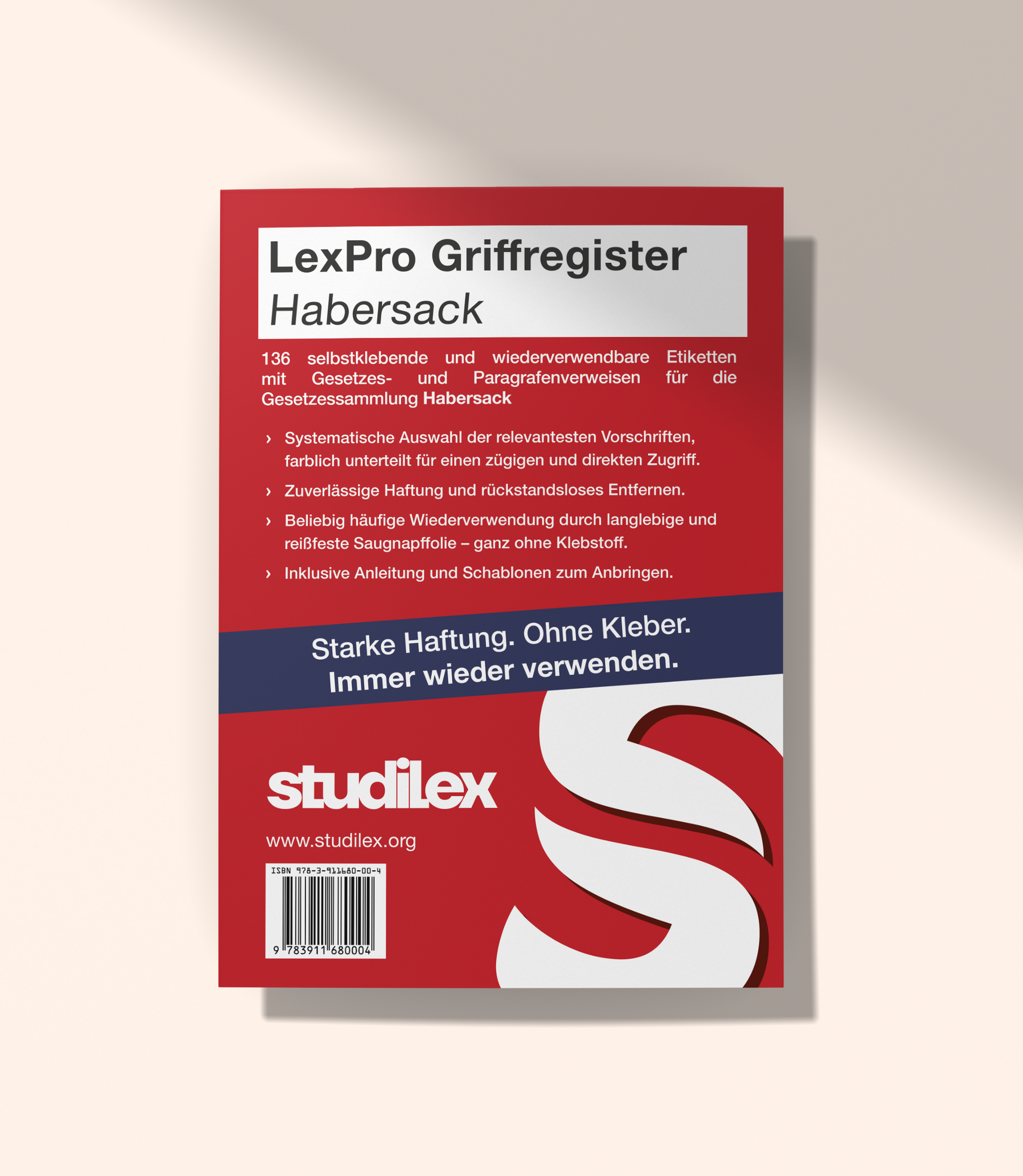 Das Griffregister LexPro Habersack enthält 136 selbstklebende und wiederverwendbare Etiketten mit Verweisen auf die wichtigsten Gesetze und Paragraphen aus der Gesetzessammlung.