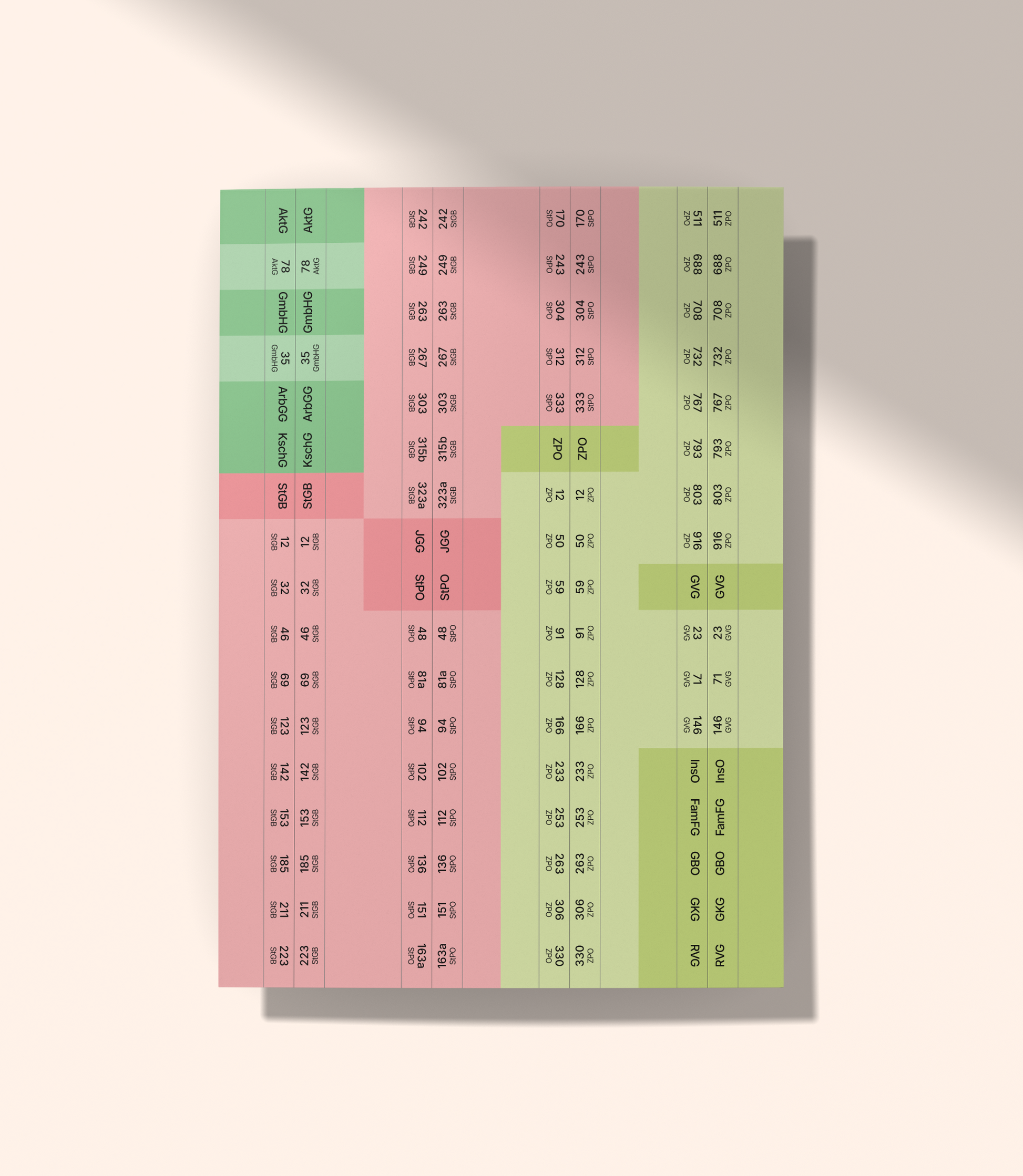 Die Auswahl ist systematisch aufgebaut und farblich unterteilt, um einen zügigen und direkten Zugriff auf die relevanten Vorschriften zu ermöglichen.